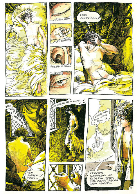 Conto gráfico em nanquim e ecoline sobre papel, com design e diagramação de Martina Schreiner.